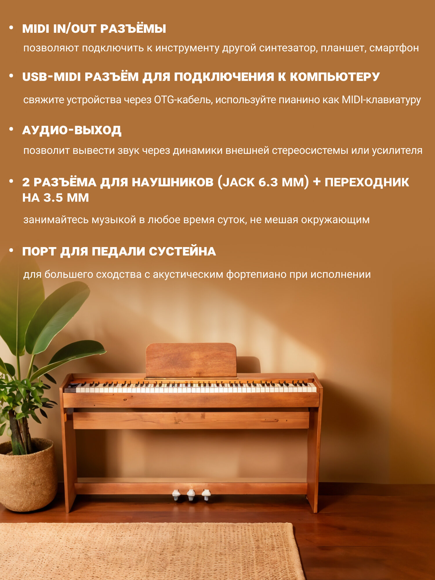 Цифровое профессиональное пианино Tesler STZ-8805 WALNUT WOOD будет отличным приобретением как для опытных игроков, так и для начинающих музыкантов.