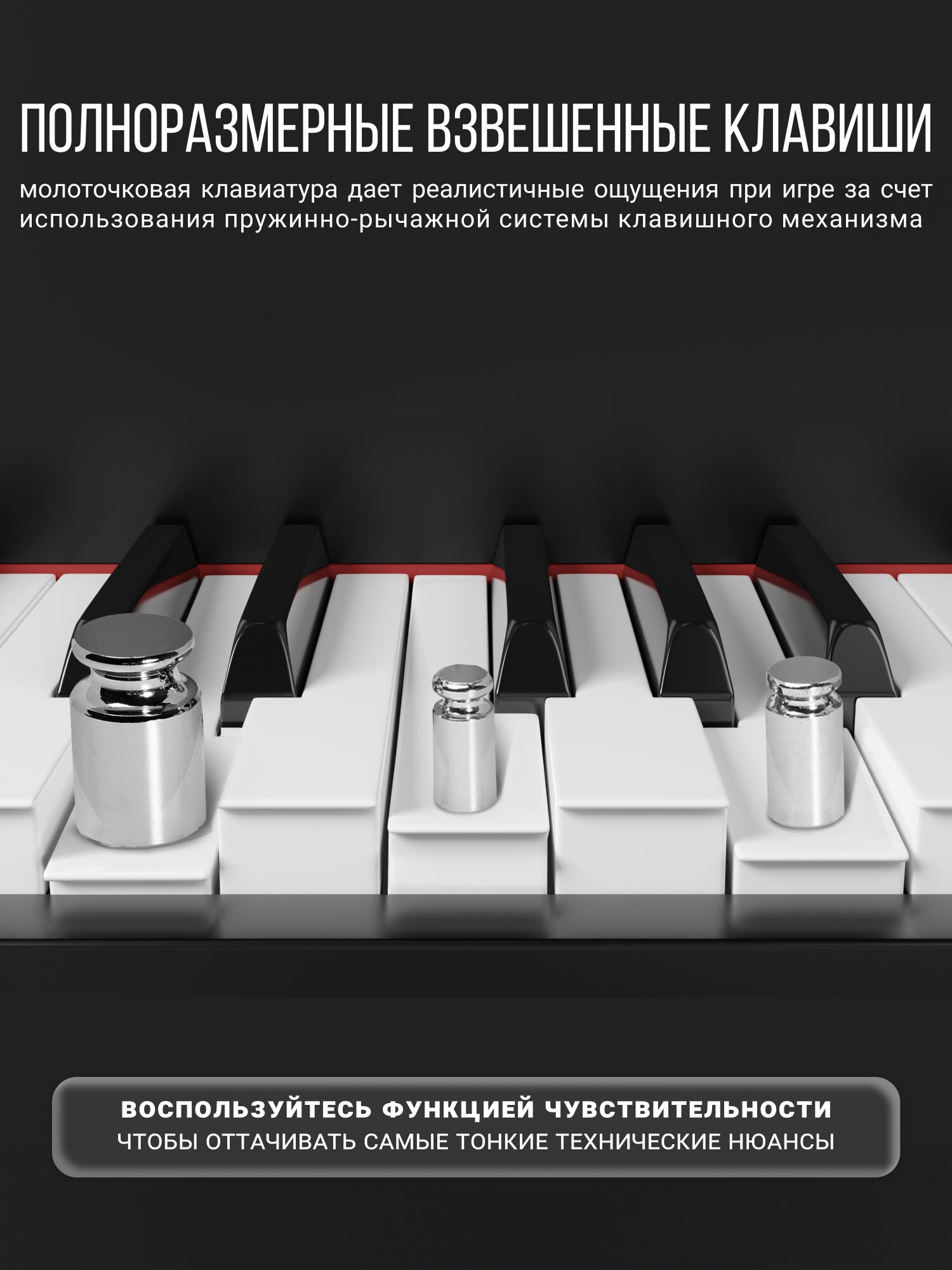 Функция чувствительности к нажатию подарит ощущение максимального контакта с инструментом, и позволит оттачивать самые тонкие технические нюансы.
