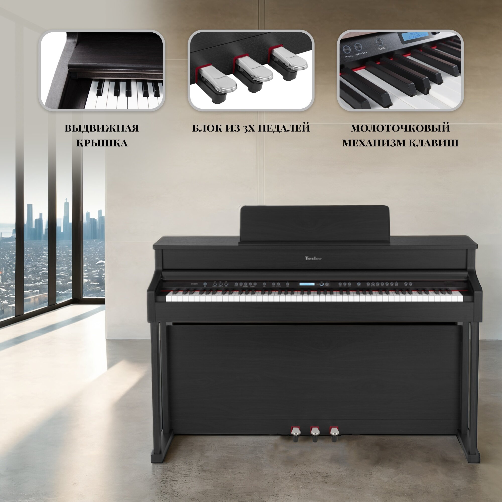 Цифровое пианино в стационарном деревянном корпусе Tesler STZ-8870 — отличный выбор для тех, кто ценит высокое качество звука, стильный дизайн и широкий функционал. В комплекте идет стойка, которая обеспечивает устойчивость инструмента во время игры. Стойка имеет ту же высоту клавиш, что и акустический инструмент, и проста в сборке.