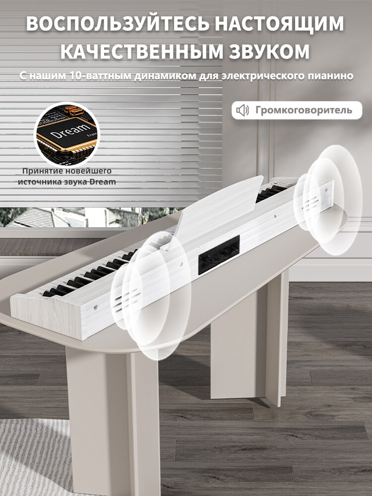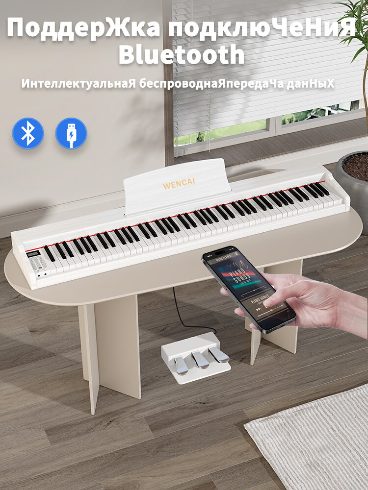 Цифровое пианино WENCAI BL-280-WC - это высококачественный инструмент, который сочетает в себе доступность и превосходное качество. С его помощью вы сможете наслаждаться игрой на фортепиано, не зависимо от того, где вы находитесь. Клавиатура пианино на 88 клавиш полностью повторяет нажатие, отклик и чувствительность клавиатуры акустического инструмента. Это обеспечивает реалистичное и глубокое звучание, которое вдохновляет на творчество. Цифровое пианино оснащено современным звуковым процессором, который обеспечивает натуральное рояльное звучание. Встроенные стереодинамики мощностью 6 Вт создают ощущение объемного звучания и обеспечивают отличное качество звука. Пианино поддерживает функции Bluetooth и MIDI, что позволяет использовать его просто в качестве аудиосистемы. Также инструмент поддерживает USB-подключение IOS, Android, MIDI/PC и подключение микрофона во время игры. В комплект входят педаль сустейна, блок питания, пюпитр и инструкция по эксплуатации на русском языке. Цифровое пианино WENCAI BL-280-WC - это отличный выбор для тех, кто ценит качество, функциональность и доступность.