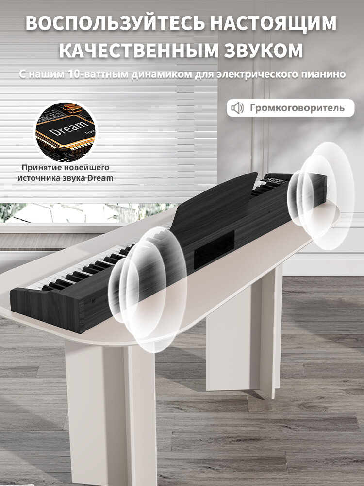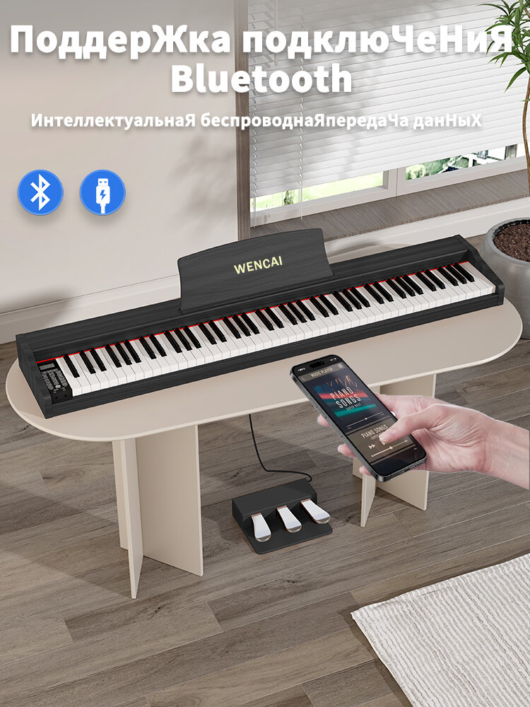 Цифровое пианино WENCAI BL-280-WC - это высококачественный инструмент, который сочетает в себе доступность и превосходное качество. С его помощью вы сможете наслаждаться игрой на фортепиано, не зависимо от того, где вы находитесь. Клавиатура пианино на 88 клавиш полностью повторяет нажатие, отклик и чувствительность клавиатуры акустического инструмента. Это обеспечивает реалистичное и глубокое звучание, которое вдохновляет на творчество. Цифровое пианино оснащено современным звуковым процессором, который обеспечивает натуральное рояльное звучание. Встроенные стереодинамики мощностью 6 Вт создают ощущение объемного звучания и обеспечивают отличное качество звука. Пианино поддерживает функции Bluetooth и MIDI, что позволяет использовать его просто в качестве аудиосистемы. Также инструмент поддерживает USB-подключение IOS, Android, MIDI/PC и подключение микрофона во время игры. В комплект входят педаль сустейна, блок питания, пюпитр и инструкция по эксплуатации на русском языке. Цифровое пианино WENCAI BL-280-WC - это отличный выбор для тех, кто ценит качество, функциональность и доступность.