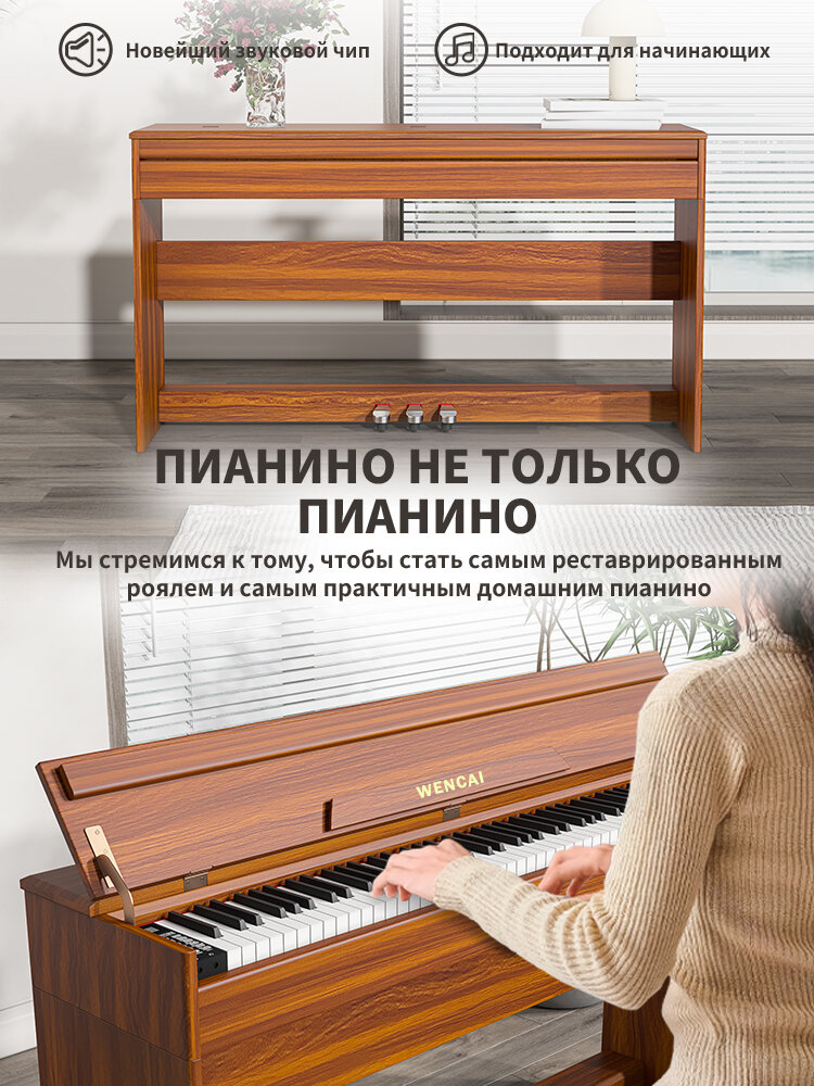 Купить Цифровое пианино WENCAI BL-8818 Полувзвешенная клавиатура (88 клавиш), откидной крышкой и MIDI/USB с доставкой по всей России.