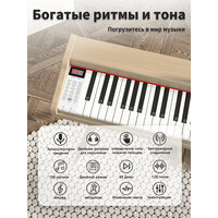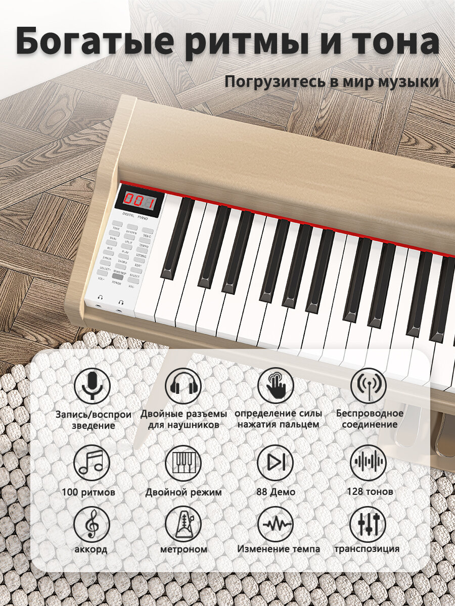Цифровое пианино WENCAI BL-8803 - это сочетание компактности, реалистичных ощущений игры и современных функций, что делает его отличным выбором для музыкантов любого уровня. 88 полноразмерных клавиш с молоточковым механизмом обеспечивают реалистичные ощущения игры на акустическом рояле. Чувствительность клавиш можно настроить в соответствии с вашим стилем - от легкого прикосновения до уверенного нажатия. Звуковая система включает два мощных динамика по 10 Вт и продвинутый звуковой процессор Dream 5 Series, обеспечивающий чистое и объемное звучание с глубокими басами. Доступно 128 тембров и 128 полифония, что позволяет наслаждаться богатой палитрой тембров и использовать различные режимы, такие как разделение клавиатуры или наложение звуков. Портативность инструмента позволяет легко перемещать и устанавливать его в разных местах, а возможность питания от портативного Power Bank делает его удобным для использования в любом месте. Два выхода для наушников и подключение к компьютеру или смартфону через USB-MIDI открывают дополнительные возможности для записи и использования обучающих приложений. Подходит для музыкантов разного уровня - от начинающих до профессионалов. Основные элементы интерфейса и меню могут быть на английском или китайском языке.