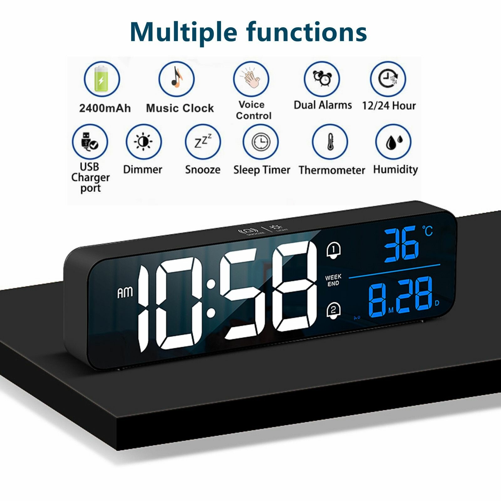 Цифровой будильник, светодиодные часы с батареей с зарядкой USB, двойной сигнал тревоги, активация звука, дремота, дата и отображение температуры, цифровые настенные часы в спальне: сравнение цен, характеристики, фото, актуальное наличие и цены.