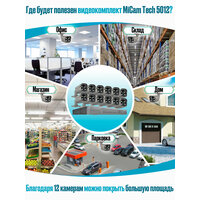 В комплект входит 12 камер (в зависимости от модификации). Благодаря им можно покрыть большую площадь.
