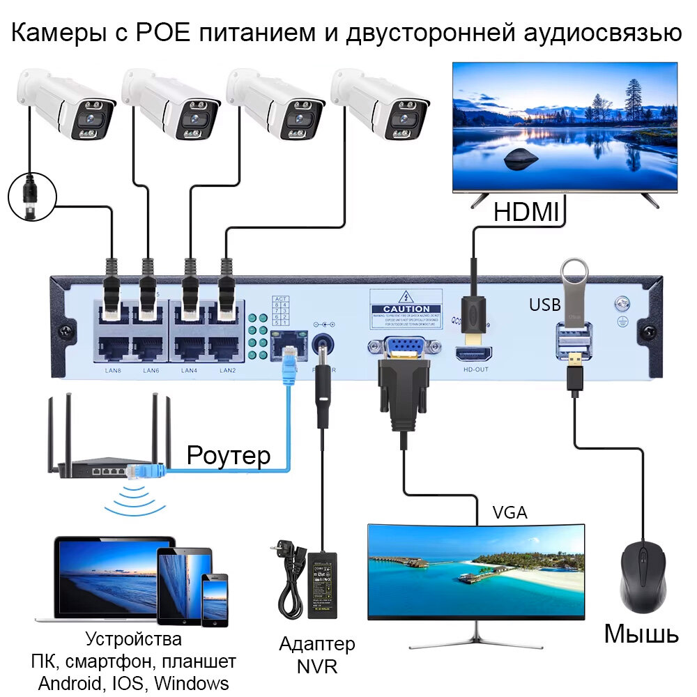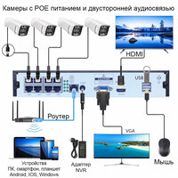 Стильные камеры подойдут для охраны территории и удачно впишутся в интерьер офиса, дома, квартиры. При внешней респектабельности внутренняя начинка поразит любого знатока. В комплект входит 8 камер 5Mp. Благодаря им можно покрыть большую площадь.