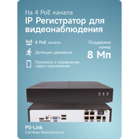 Купить Цифровой IP видеорегистратор PS-link PS-I3104XP на 4 каналa, поддержка 8Мп, ONVIF, питание PoE, удаленный доступ XMeye с доставкой по всей России.