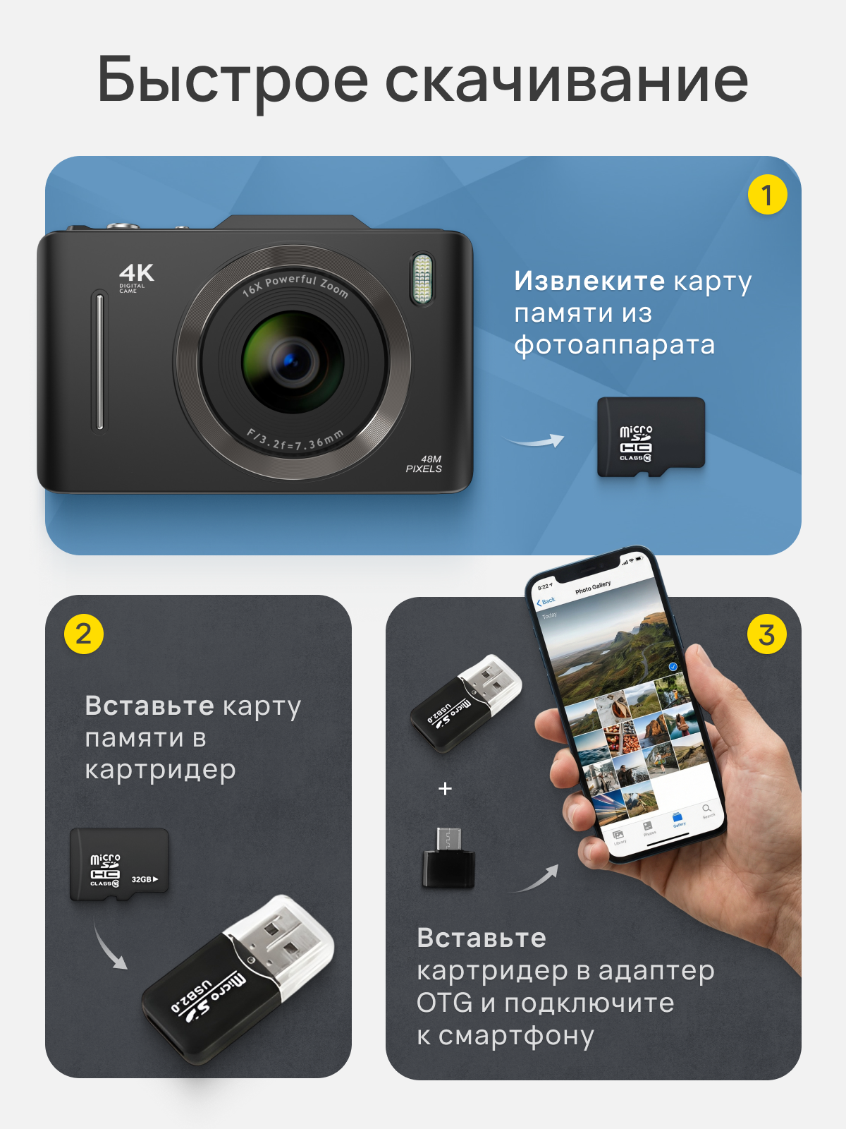 Купить Цифровой компактный фотоаппарат (мыльница), 32GB, 48МП, черный с доставкой по всей России.