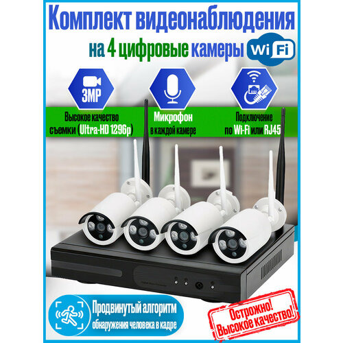 Беспроводной комплект видеонаблюдения на 4 камеры Micam HiSecurity White 3Mp 4CH представляет собой полноценную систему видеонаблюдения, простую в установке и не требующую сложных настроек. Камеры выполнены в специальных металлических защитных корпусах и могут использоваться в любых помещениях и на улице независимо от погодных условий. Передача данных с камер на видеорегистратор осуществляется по беспроводной связи на частоте 2.4 ГГц (WiFi) на расстоянии до 100 метров (без преград), что избавит от необходимости прокладывать кабель. Камеры уличные оснащены встроенной инфракрасной подсветкой для съемки в темноте. Комплект поддерживает удаленный доступ со смартфона и компьютера (при наличии подключения к сети Интернет), при этом просматривать можно как архив записей, так и видео в «реальном» времени. Видеорегистратор оснащен системой обнаружения движения, что позволяет получать тревожные уведомления на смартфон и электронную почту, а также производить запись при проникновении на объект. Для просмотра изображения с камер видеонаблюдения в высоком качестве пользователь может подключить видеорегистратор к монитору или телевизору высокого разрешения через HDMI вход. Данный комплект - это инновационное «коробочное решение» для установки видеонаблюдения своими руками. Для подключения и базовой настройки не нужно иметь диплом ИТ-специалиста. Комплект видеонаблюдения собирается, как конструктор, и Вы с легкостью с этим справитесь. Уникальные преимущества системы: Камера использоваться для дачи, дома, улицы, квартиры, комнаты, подъезда, гаража, офиса.