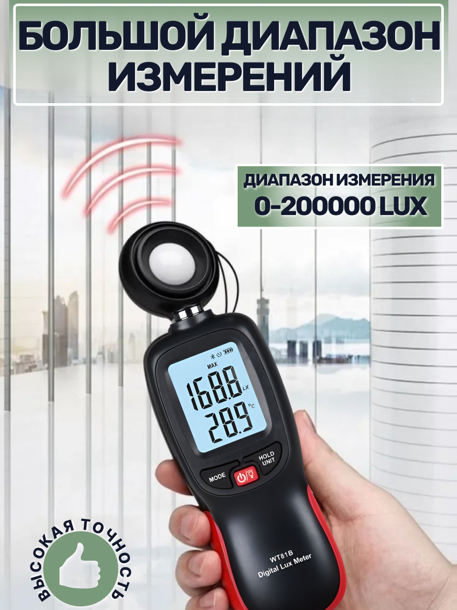 Купить Цифровой люксметр Мобиплюс для измерения освещенности, ЖК-дисплей с подсветкой с доставкой по всей России.