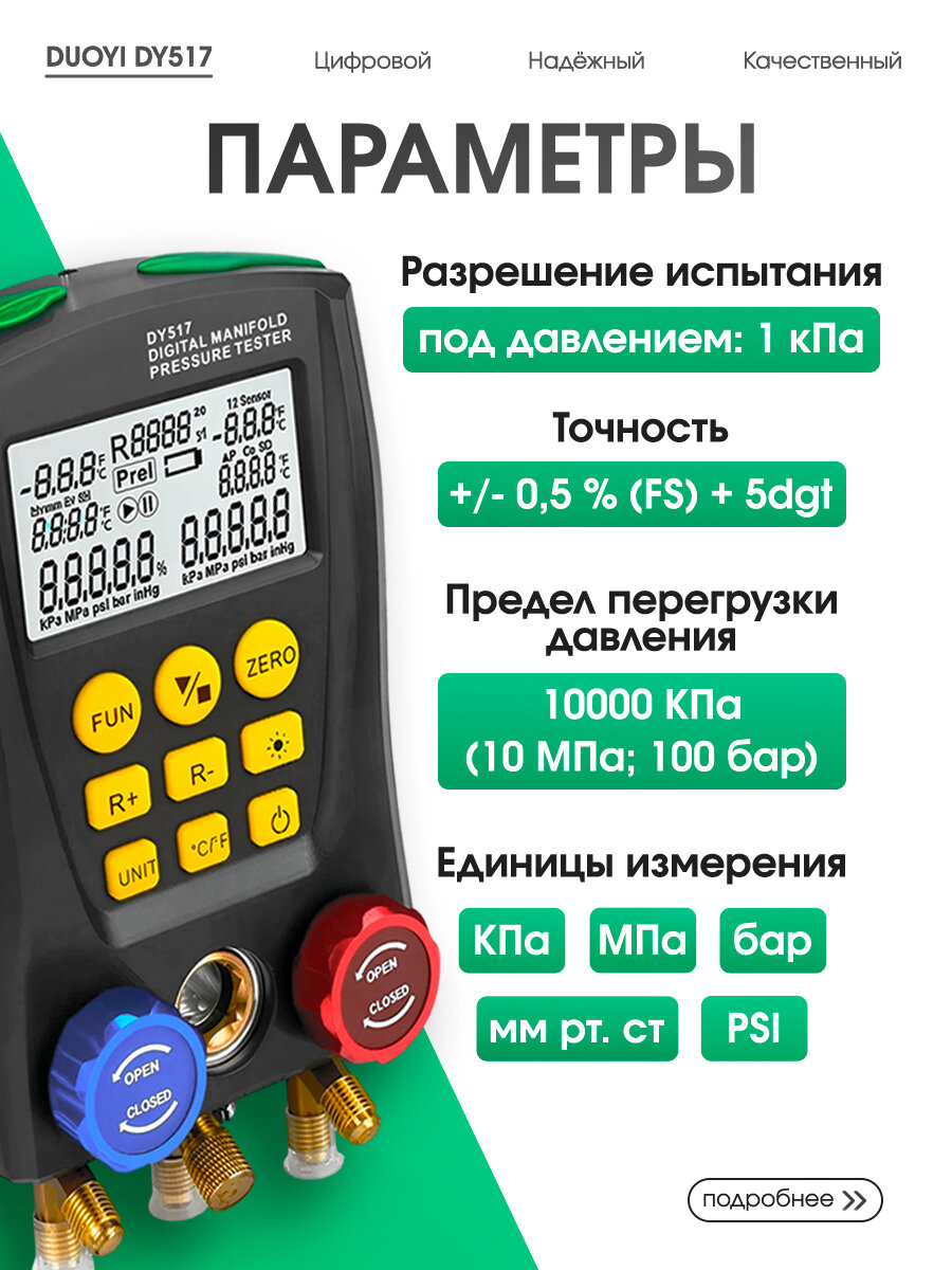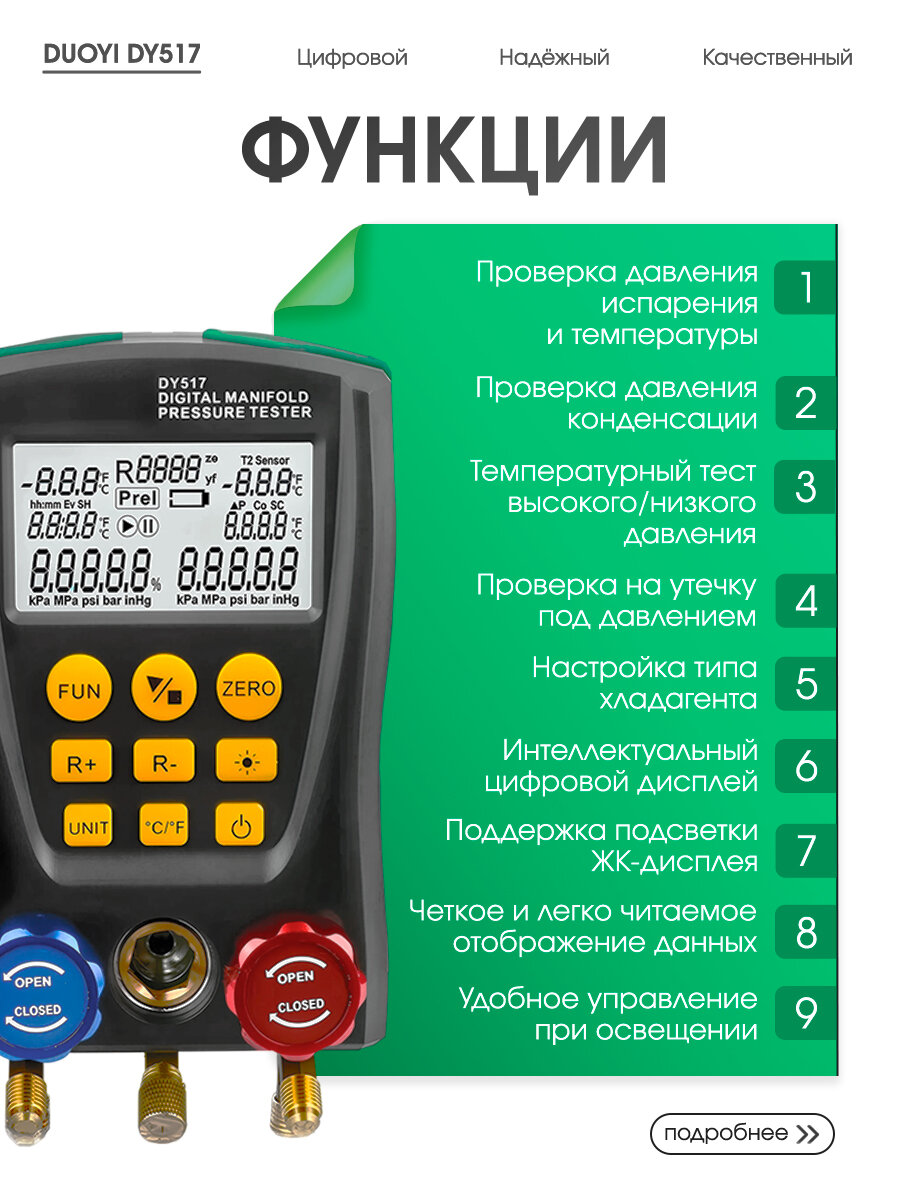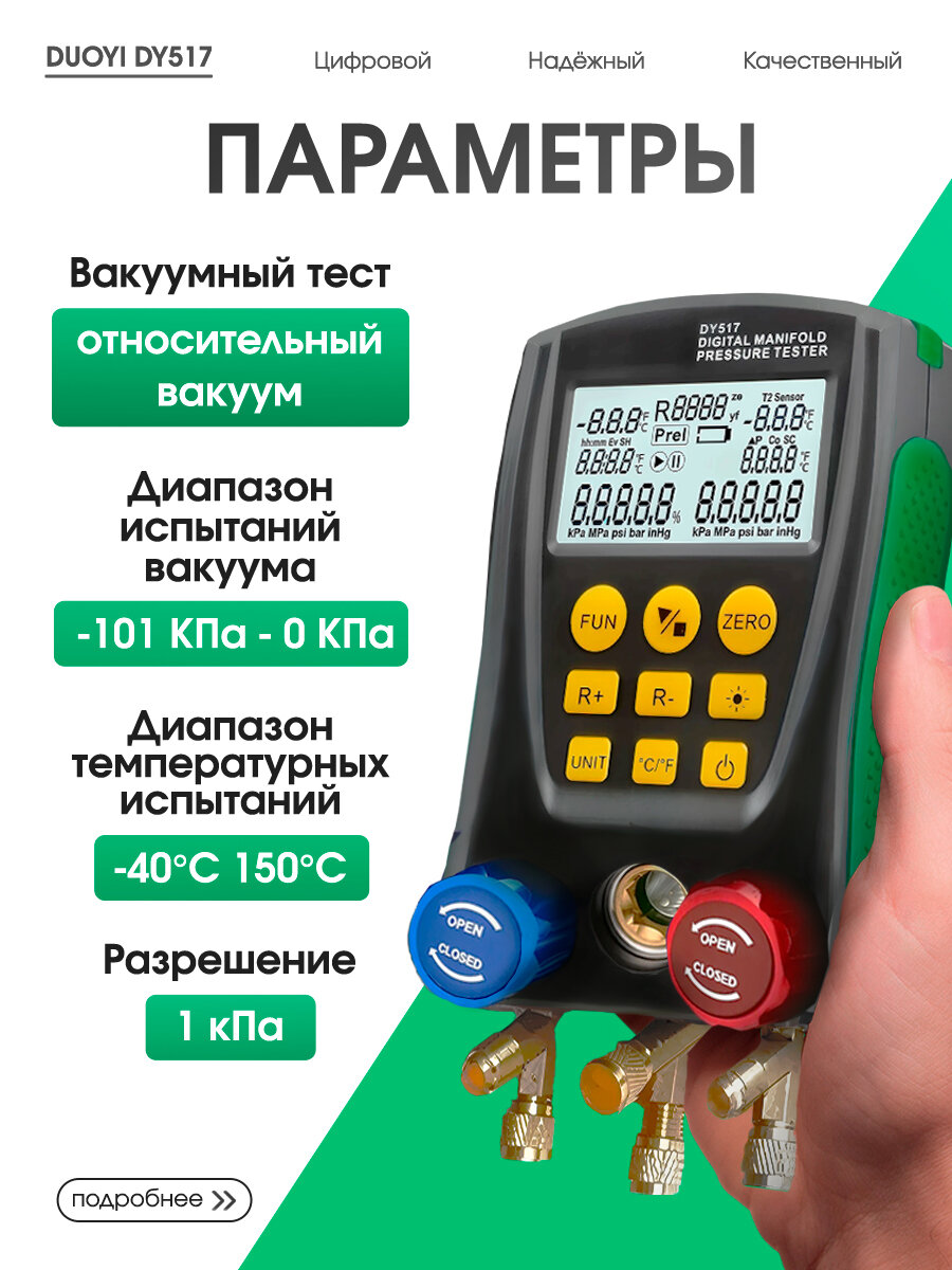 Цифровой манометр для холодильного оборудования DUOYI DY517, ЖК-дисплей, подсветка: сравнение цен, характеристики, фото, актуальное наличие и цены.