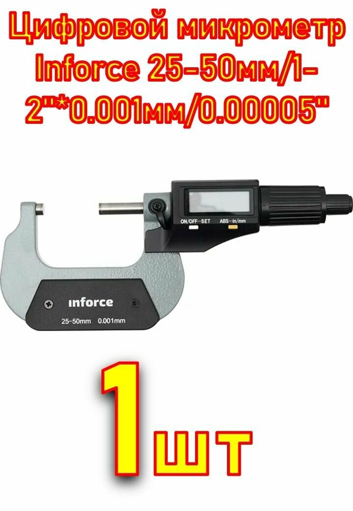 Цифровой микрометр 25-50мм/1-2"*0.001мм/0.00005" Inforce - простой и удобный измерительный прибор для определения линейных размеров детали.