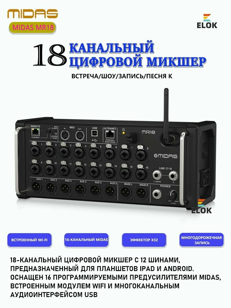 Цифровой микшерный пульт, MIDAS MR18,18 каналов, WiFi модуль: сравнение цен, характеристики, фото, актуальное наличие и цены.