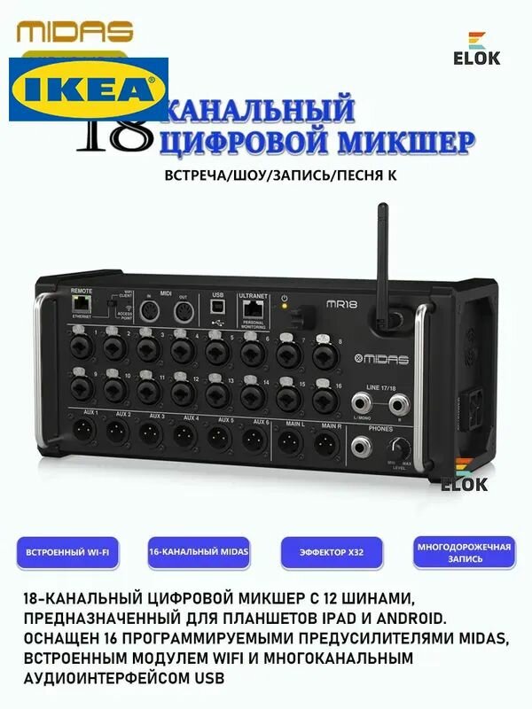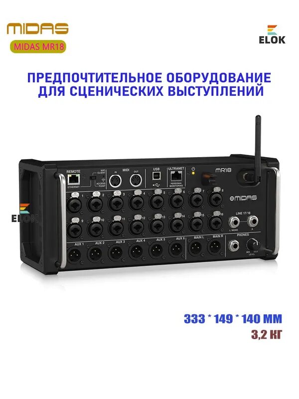 Цифровой микшерный пульт, MIDAS MR18,18 каналов, WiFi модуль: сравнение цен, характеристики, фото, актуальное наличие и цены.