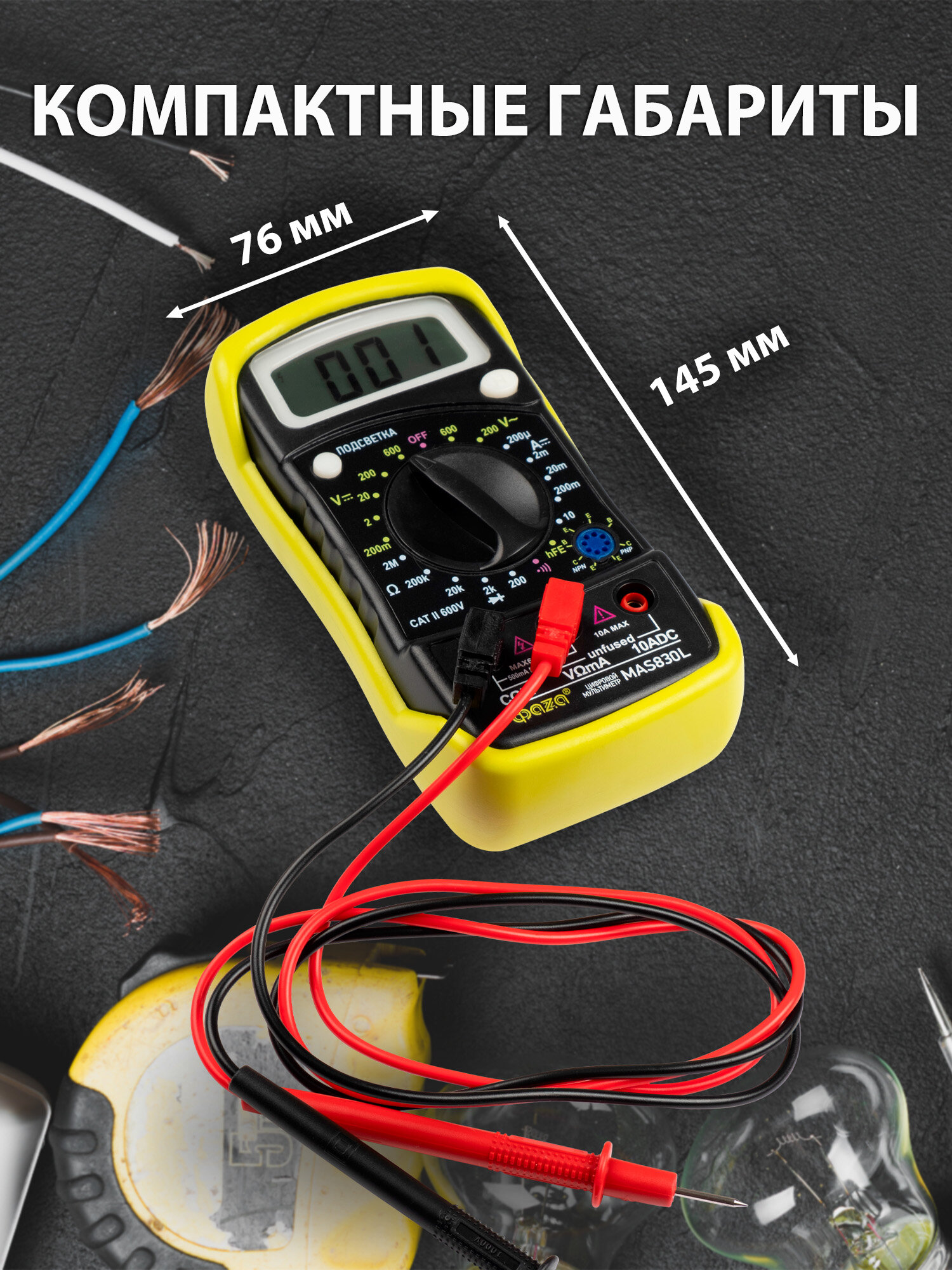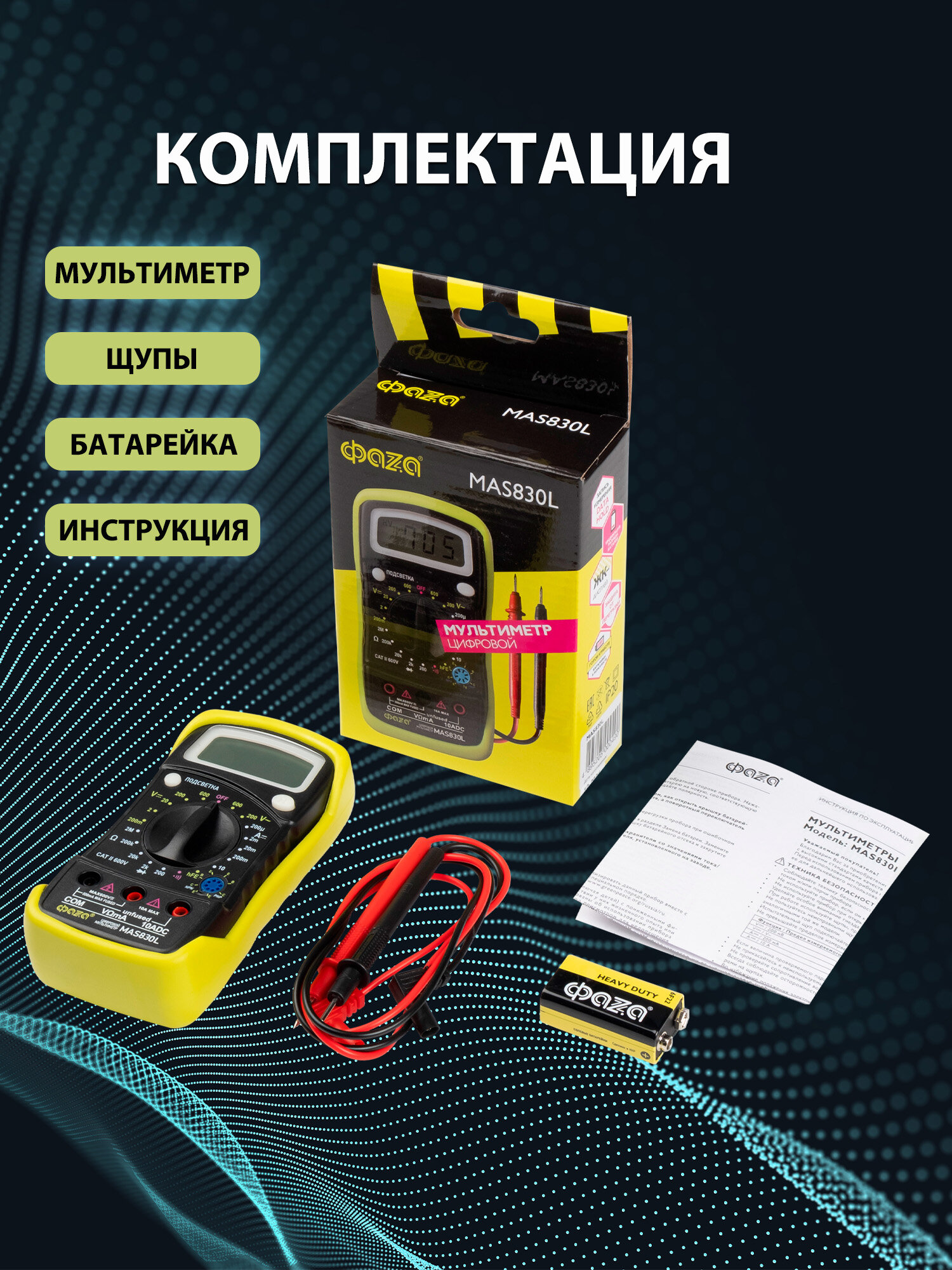 Мультиметр ФаZА MAS830L, цифровой, с подсветкой дисплея, в комплекте измерительные щупы: сравнение цен, характеристики, фото, актуальное наличие и цены.