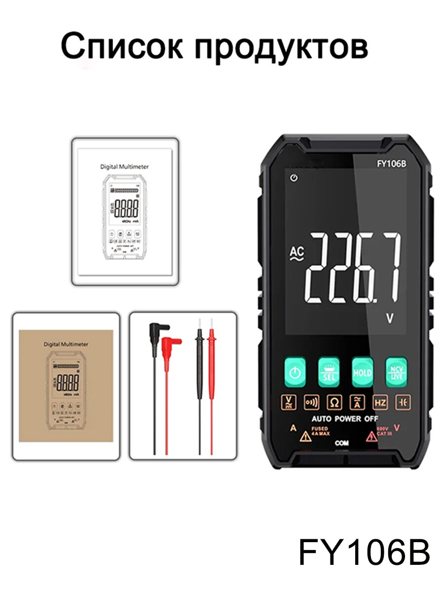 Купить Цифровой мультиметр FY-106B, портативный мультиметр, универсальный измеритель защиты от ожогов с большим экраном с доставкой по всей России. Цифровой мультиметр FY-106B, портативный мультиметр, универсальный измеритель защиты от ожогов с большим экраном: сравнение цен, характеристики, фото, актуальное наличие и цены.