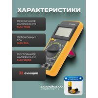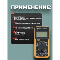 Цифровой мультиметр - электроизмерительный прибор который включает в себя несколько функций и набор измеряемых параметров. Все приборы измеряют постоянное и переменное напряжение, постоянный ток и сопротивление в цепи. А также с помощью данного прибора можно проводить тестирование диодов. Тестер электрический предназначен для измерения тока, напряжения, сопротивления, параметров диодов и транзисторов. Мультиметр токоизмерительный, снабжены защитой от перегрузок, точно устанавливают значение силы тока, постоянного и переменного напряжения и сопротивления. Данный электроинструмент для дома оценивает работоспособность диода или неисправность транзистора. Незаменим для ремонта. Используется для электрики при монтаже проводки. Применяется при ремонте электро-бытовой техники, автомобилей, устранение неисправностей, радиоаппаратуры, для проводки.