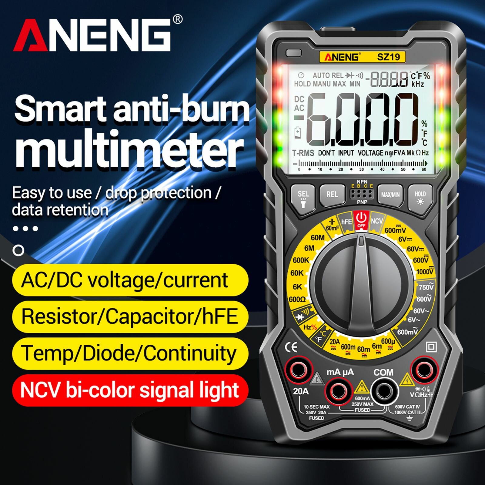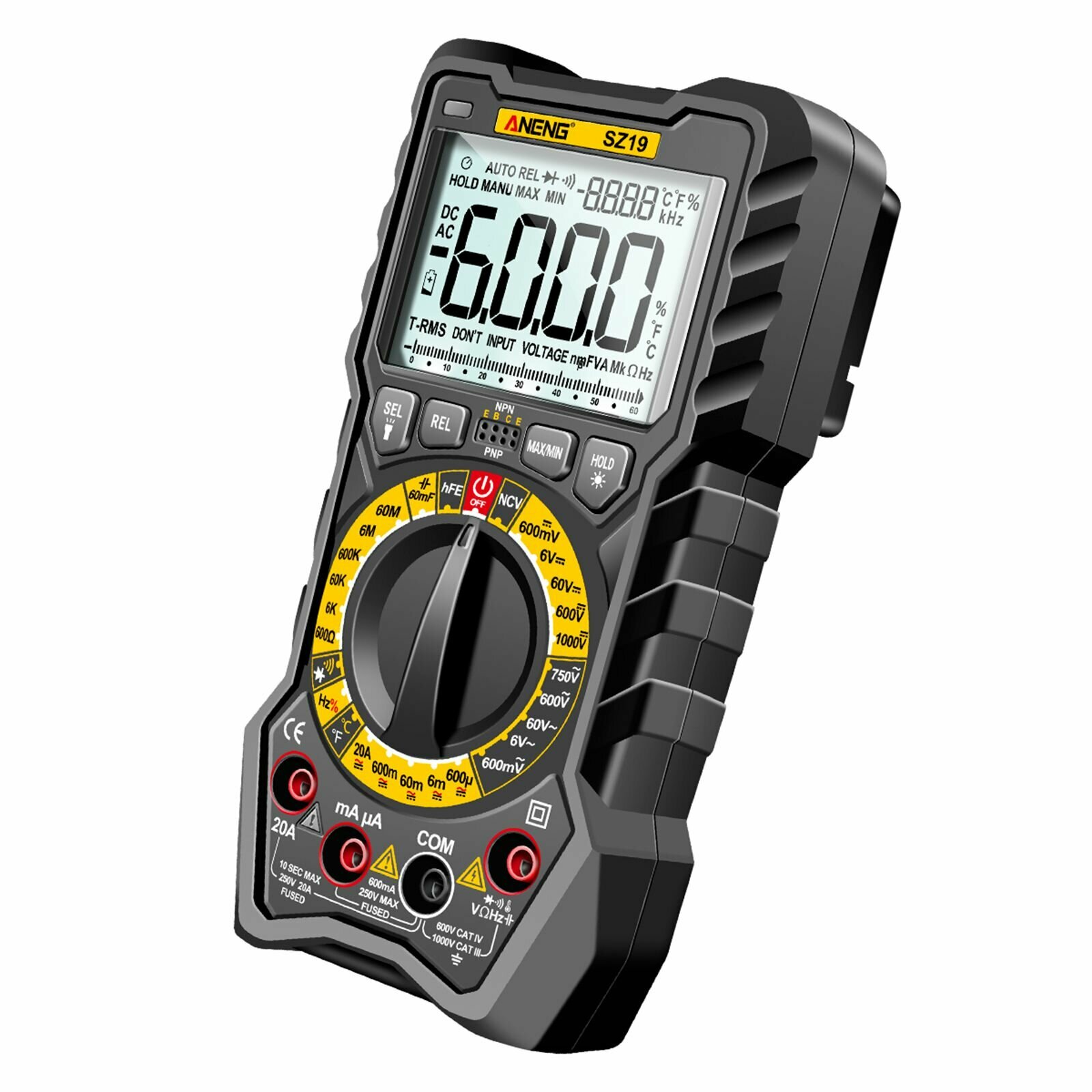 Цифровой мультиметр TRMS 6000 отсчетов, вольтметр, омметр, тестер с автоматическим определением диапазона, точно измеряет сопротивление напряжению и току