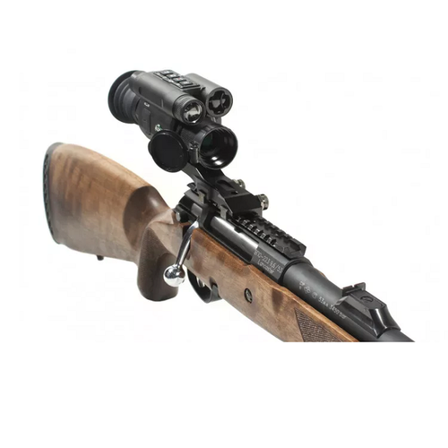 В режиме охоты в темноте незаменима лазерная IR-подсветка 850 нм: позволяет нормально охотиться и вести наблюдения на расстоянии порядка 300.350 метров. Осветитель построен на базе VSCEL лазера, который и прослужит дольше, и заряд батареи будет расходовать по минимуму, в отличие от традиционных лазеров. Луч лазера регулируется по яркости (3 уровня) и диаметру«пятна» и совершенно незаметен глазом животного.