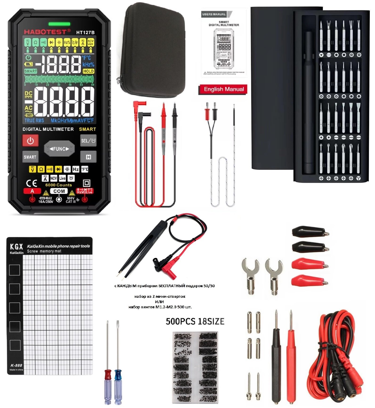 Купить Мультиметр профессиональный True RMS HABOTEST HT127B Repair Kit PRO с NCV. Гарантия 2 года. 16 функций с доставкой по всей России.