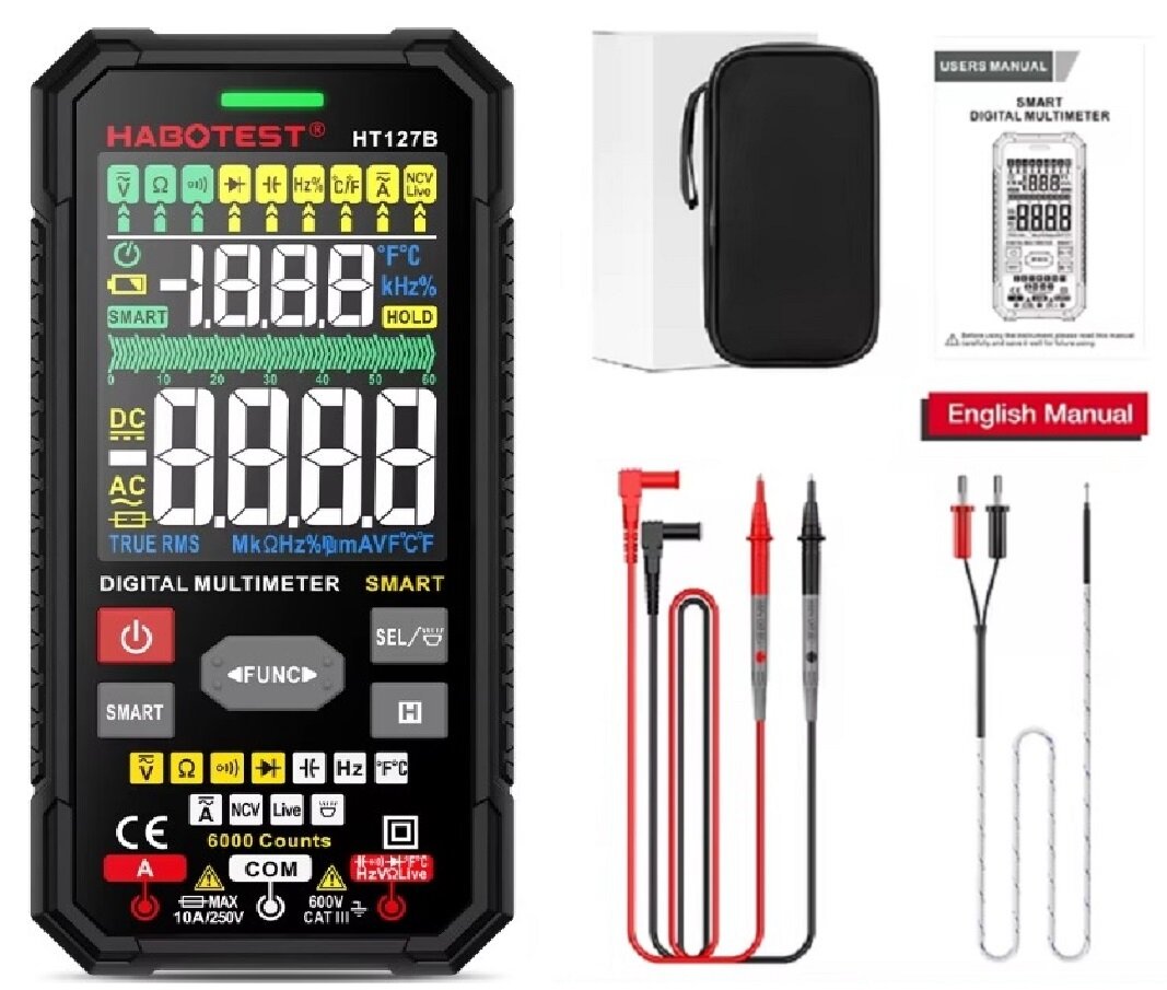 Купить Мультиметр профессиональный True RMS HABOTEST HT127B с NCV. Гарантия 2 года. 16 функций с доставкой по всей России. Мультиметр профессиональный True RMS HABOTEST HT127B с NCV. Гарантия 2 года. 16 функций: сравнение цен, характеристики, фото, актуальное наличие и цены.