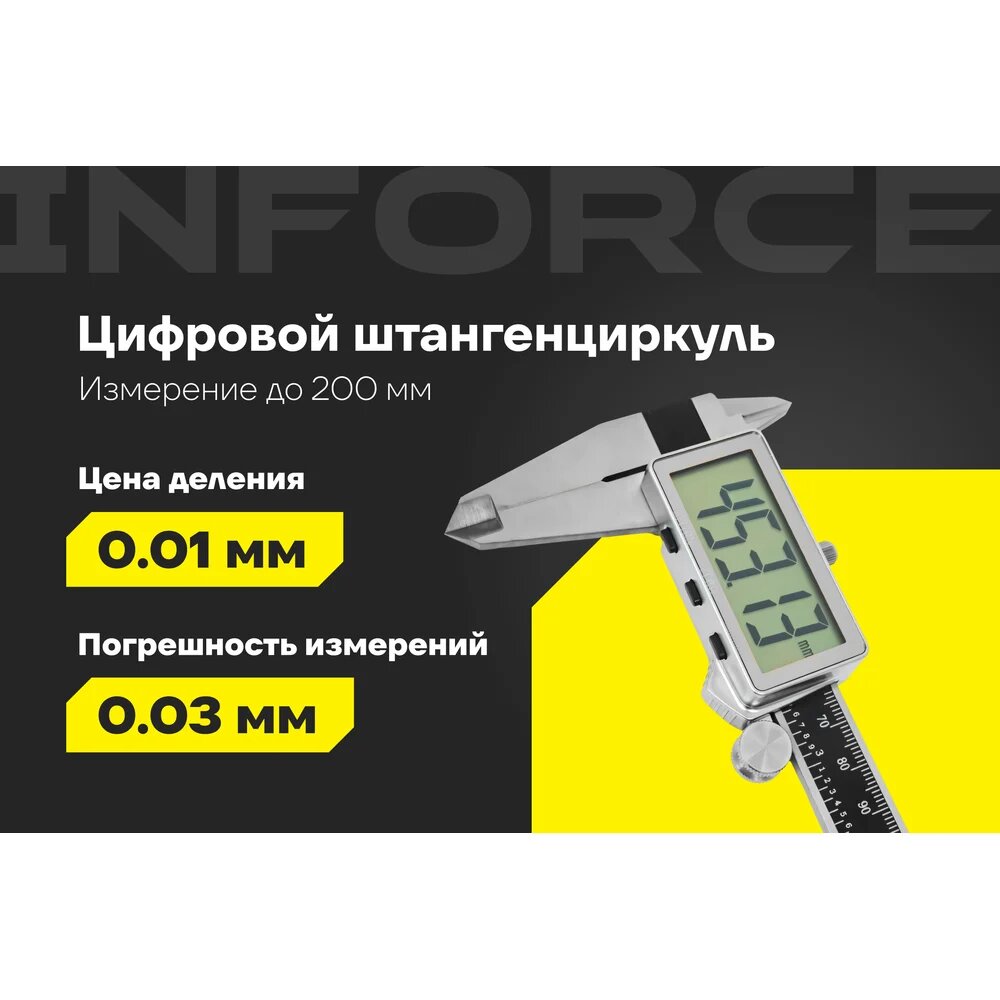 Купить Цифровой штангенциркуль 0-200 мм Inforce 06-11-40 с доставкой по всей России. Цифровой штангенциркуль 0-200 мм Inforce 06-11-40: сравнение цен, характеристики, фото, актуальное наличие и цены.