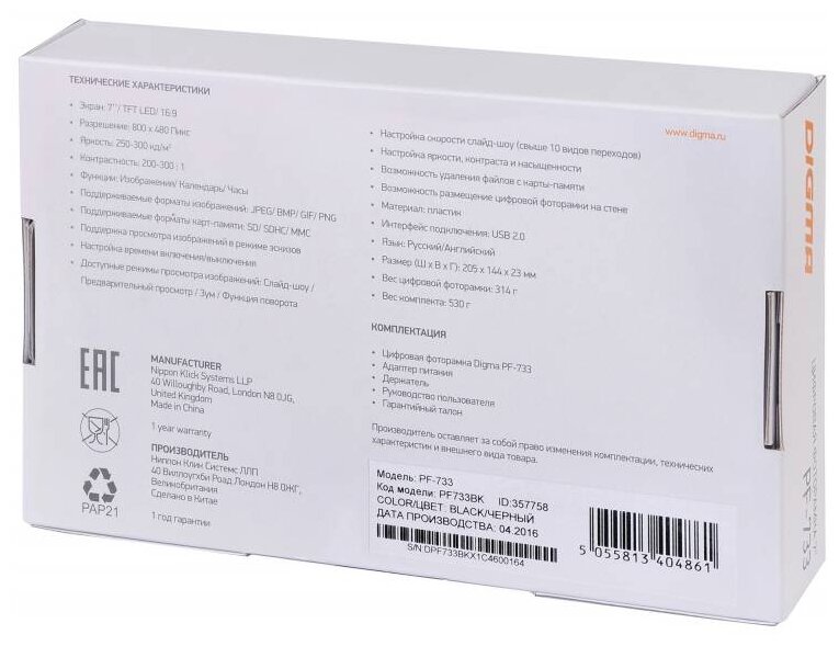 Купить Цифровые фоторамки DIGMA Фоторамка Digma 7″ PF-733 800×480 черный пластик с доставкой по всей России. Цифровые фоторамки DIGMA Фоторамка Digma 7″ PF-733 800×480 черный пластик: сравнение цен, характеристики, фото, актуальное наличие и цены.