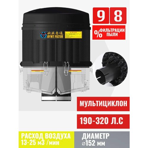 Циклонный воздушный предочиститель мултициклон OYHT PL1600 для ДВС 190-320 л. с. диаметр 152 мм на трактор МТЗ Беларусь Кировец БТЗ ХТЗ Lovol Foton Dongfeng Zoomlion Shifeng Xingtai Yanmar Файтер Скаут Агромаш Уралец Русич John Deere Case Claas Valtra Комбайн РСМ Acros Акрос Полесье Палессе Дон.