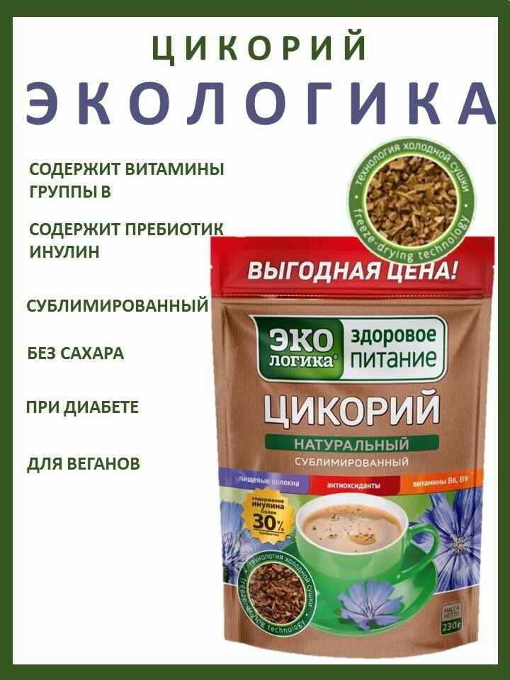Цикорий ЭКОЛОГИКА сублимированный 230 г пакет содержит только натуральные ингредиенты. Это делает его не только вкусным, но и полезным для здоровья. Продукт обогащен витаминами и минералами, которые способствуют укреплению иммунитета и улучшению общего состояния организма.