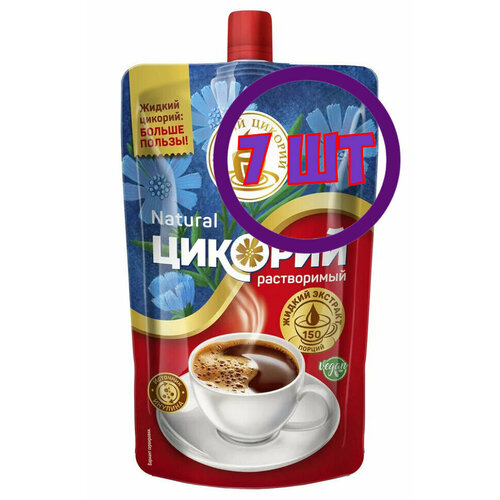 Комплект 7 упаковок. Высококачественный продукт из цикория, прошедший самую минимальную обработку, что позволяет сохранить максимум пользы и аромата цикория. Одной упаковки хватит на 150 чашек готового напитка. Продукт с полувековой историей существования, знакомый со времен СССР и, как следствие, пользующийся стабильным спросом населения.