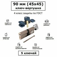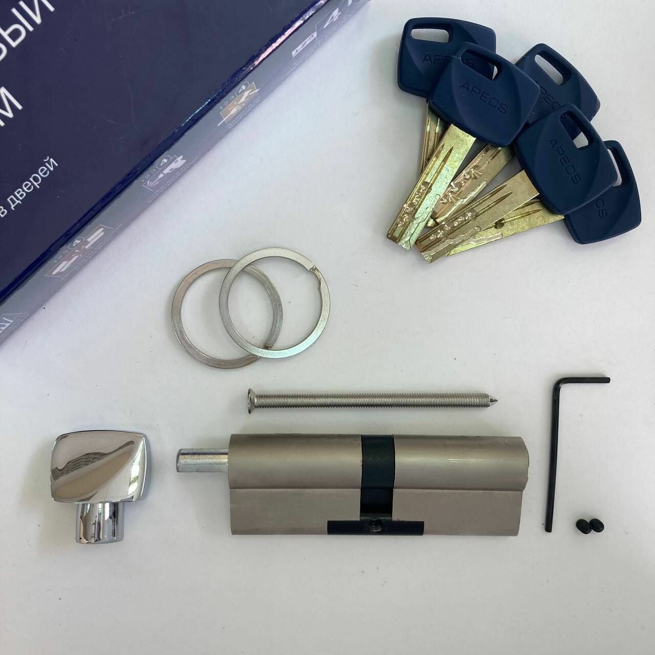 Комплектация: цилиндровый механизм 1 шт, ключи 5 шт, съёмная вертушка, кольцо для ключей, винт крепления цилиндрового механизма 1 шт.
