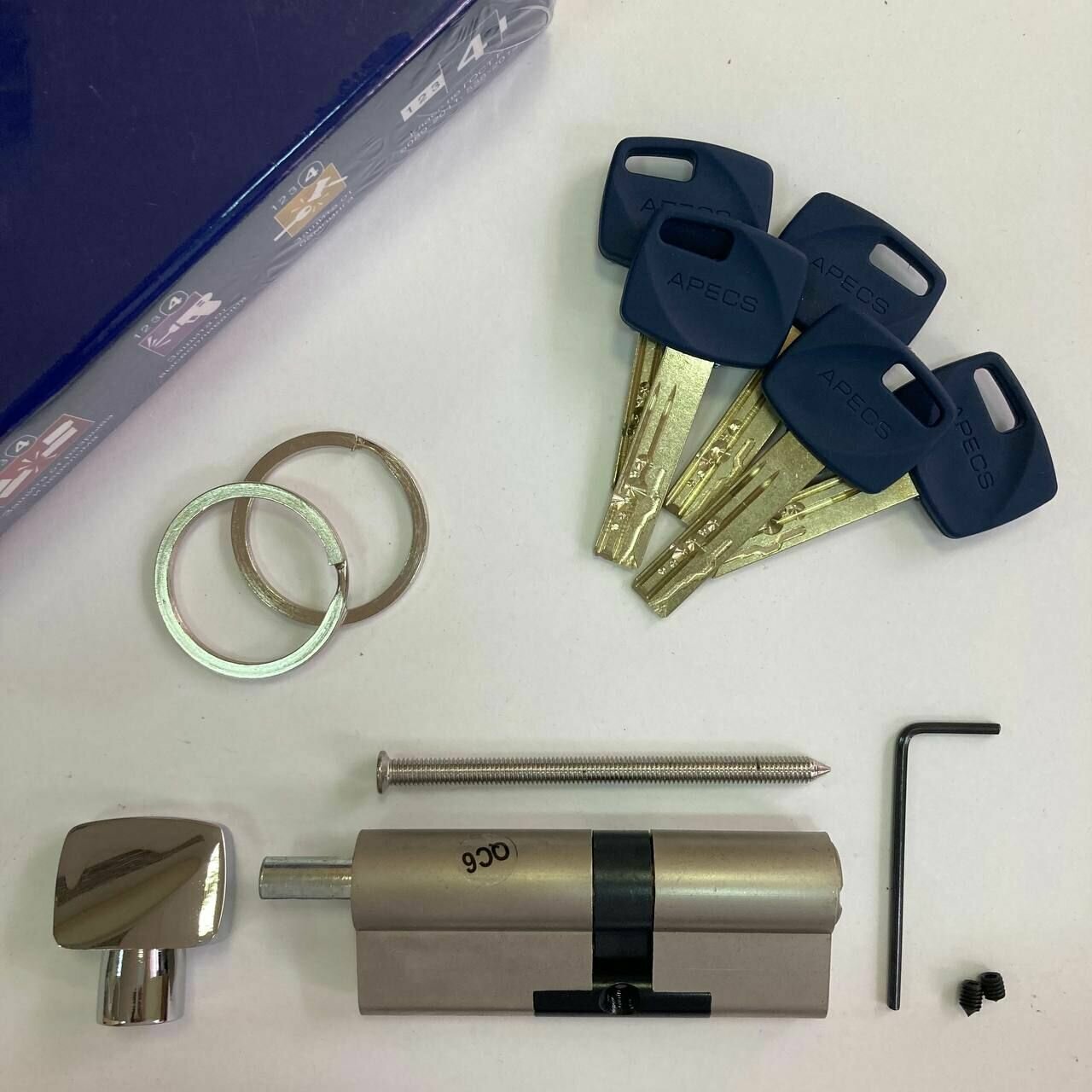 Комплектация: цилиндровый механизм 1 шт, ключи 5 шт, съёмная вертушка, кольцо для ключей, винт крепления цилиндрового механизма 1 шт.