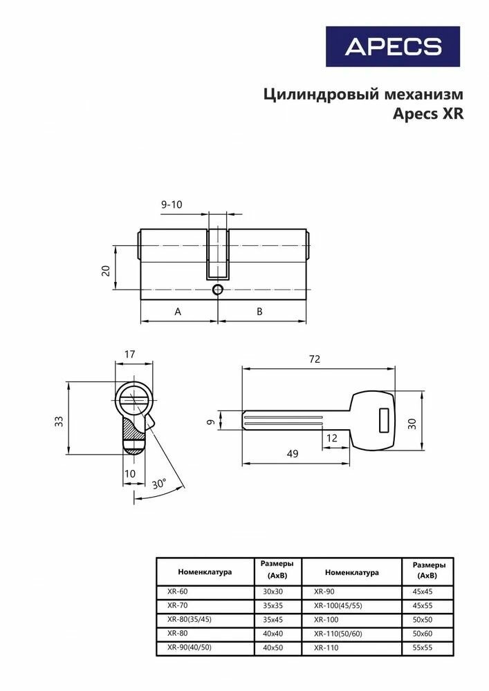 Цилиндровый механизм APECS PREMIER XR-80-NI: сравнение цен, характеристики, фото, актуальное наличие и цены.