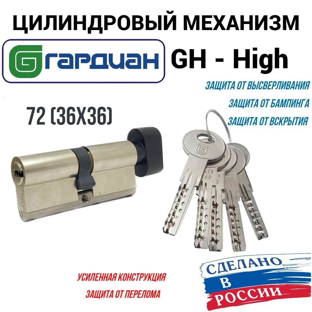 Купить Цилиндровый механизм Гардиан High GH 72мм. (36/36V) S, черная вертушка, личинка для замка с доставкой по всей России. Цилиндровый механизм Гардиан High GH 72мм. (36/36V) S, черная вертушка, личинка для замка: сравнение цен, характеристики, фото, актуальное наличие и цены.