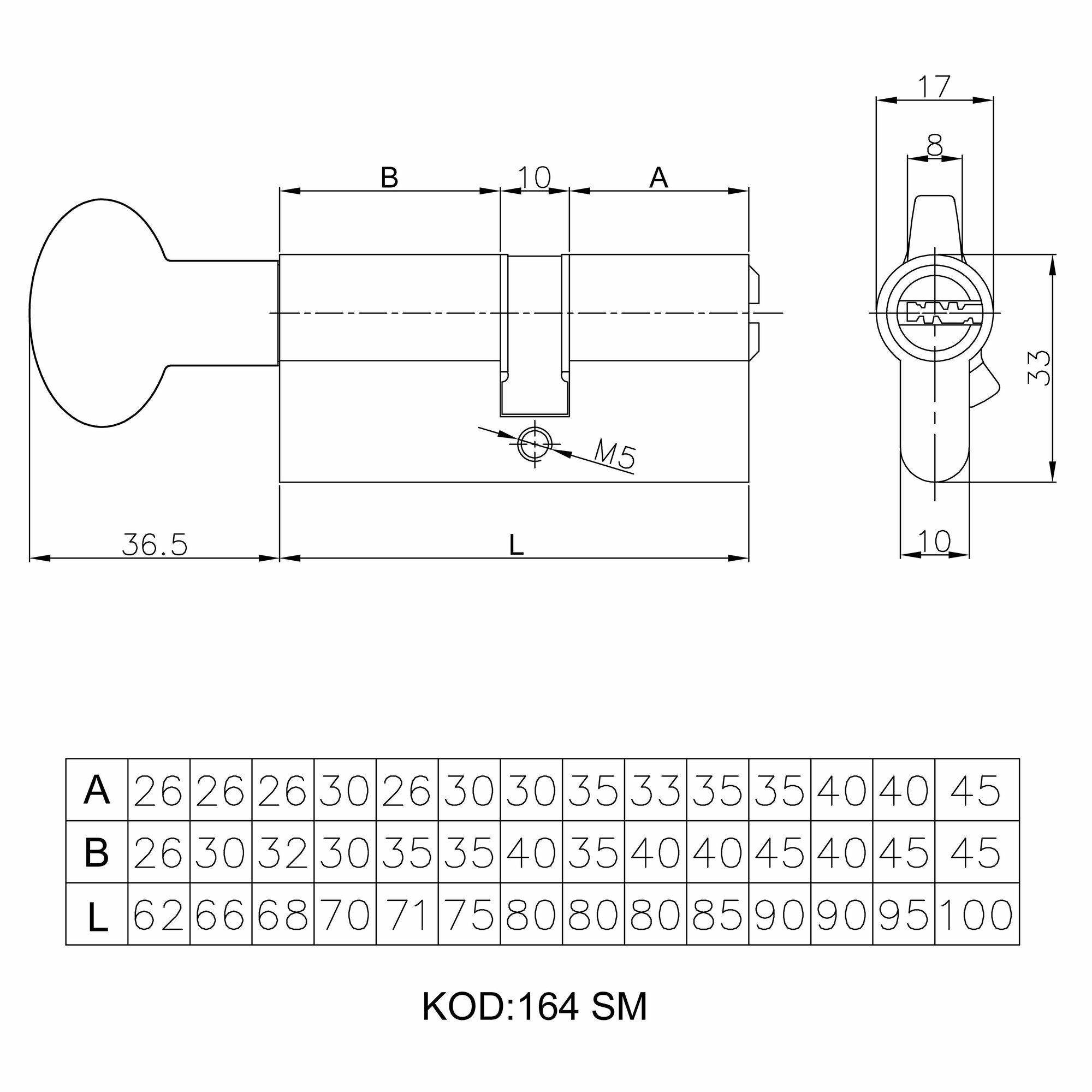 Цилиндровый механизм с вертушкой серии 164 SM имеет 2 класс безопасности, 6 латунных комбинативных пинов обеспечивают 91 000 комбинаций. Цилиндр оборудован стальными штифтами против высверливания. Для усложнения вскрытия цилиндров отмычкой используются пины грибовидной формы. Тип ключа: перфорированный. Исполнение: ключ-вертушка. Комплектация: 5 латунных ключей, крепежная фурнитура. Размер: 80 (35+10+35) мм. Цвет: никель.