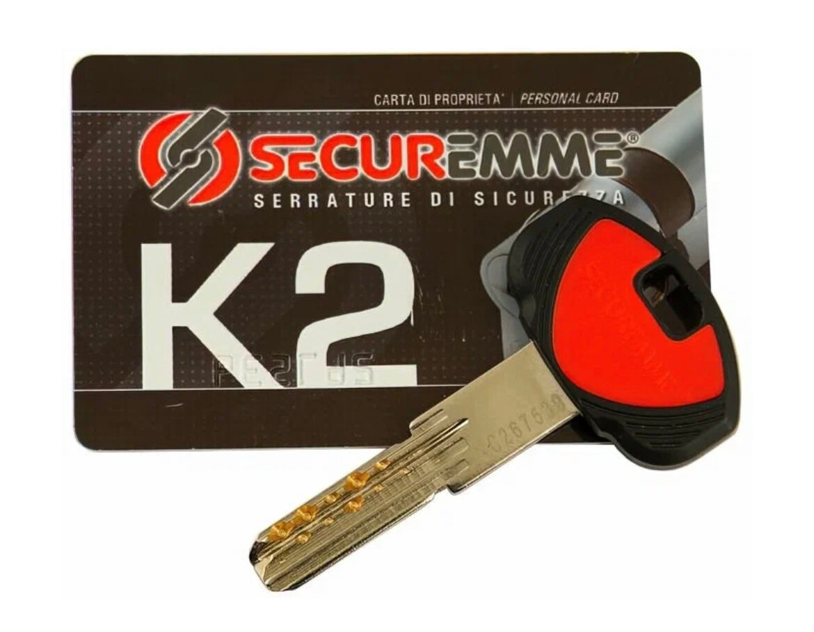 K2 Перфорированный цилиндр с функцией перекодировки. 10 активных пинов монтажный (сервисный) ключ — 1 шт ( монтажный ключ используется во время строительных работ. Основные ключи изменяют шифр и дезактивируют монтажный ключ) основные ключи — 5 шт, защита от дублирования (ключи запечатаны в оригинальную упаковку SECUREMME, защита от высверливания, стальной стержень в основании цилиндра, стальные пиновые штифты. сертифицирован в России по 3-му классу взломостойкости