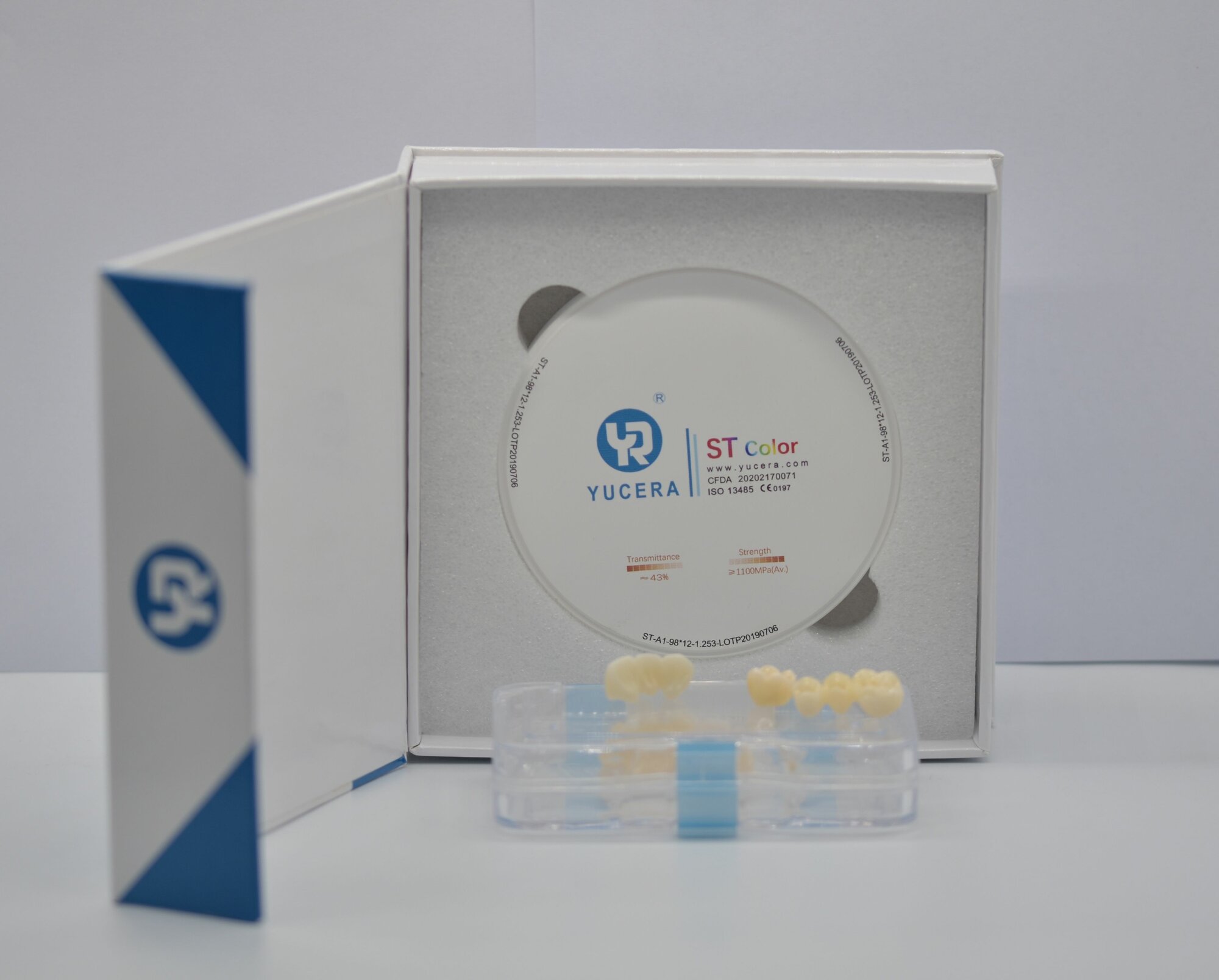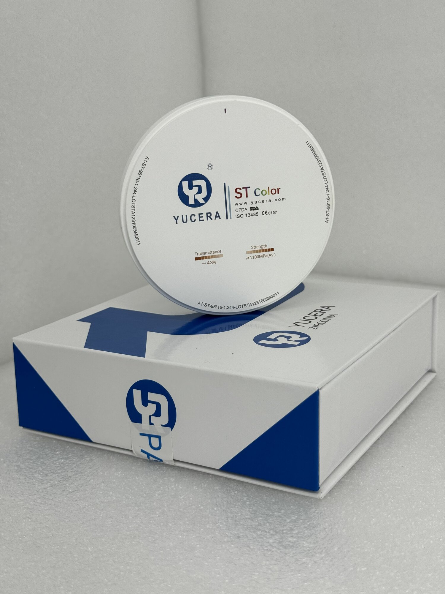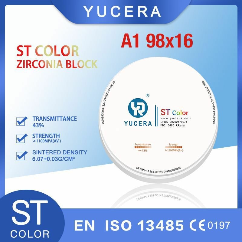 ST color - циркониевый диск, предварительно окрашенный, диаметр 98 мм | YUCERA (Китай). Подходит для полноанатомических коронок и мостовидных конструкций. Диаметр диска 98 мм - для фрезерных станков CAD/CAM.