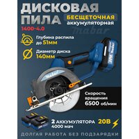 Купить Циркулярная пила Mabar 1400-4, для дерева/металла, бесщеточный мотор, АКБ 4000мАч, 2 шт с доставкой по всей России.