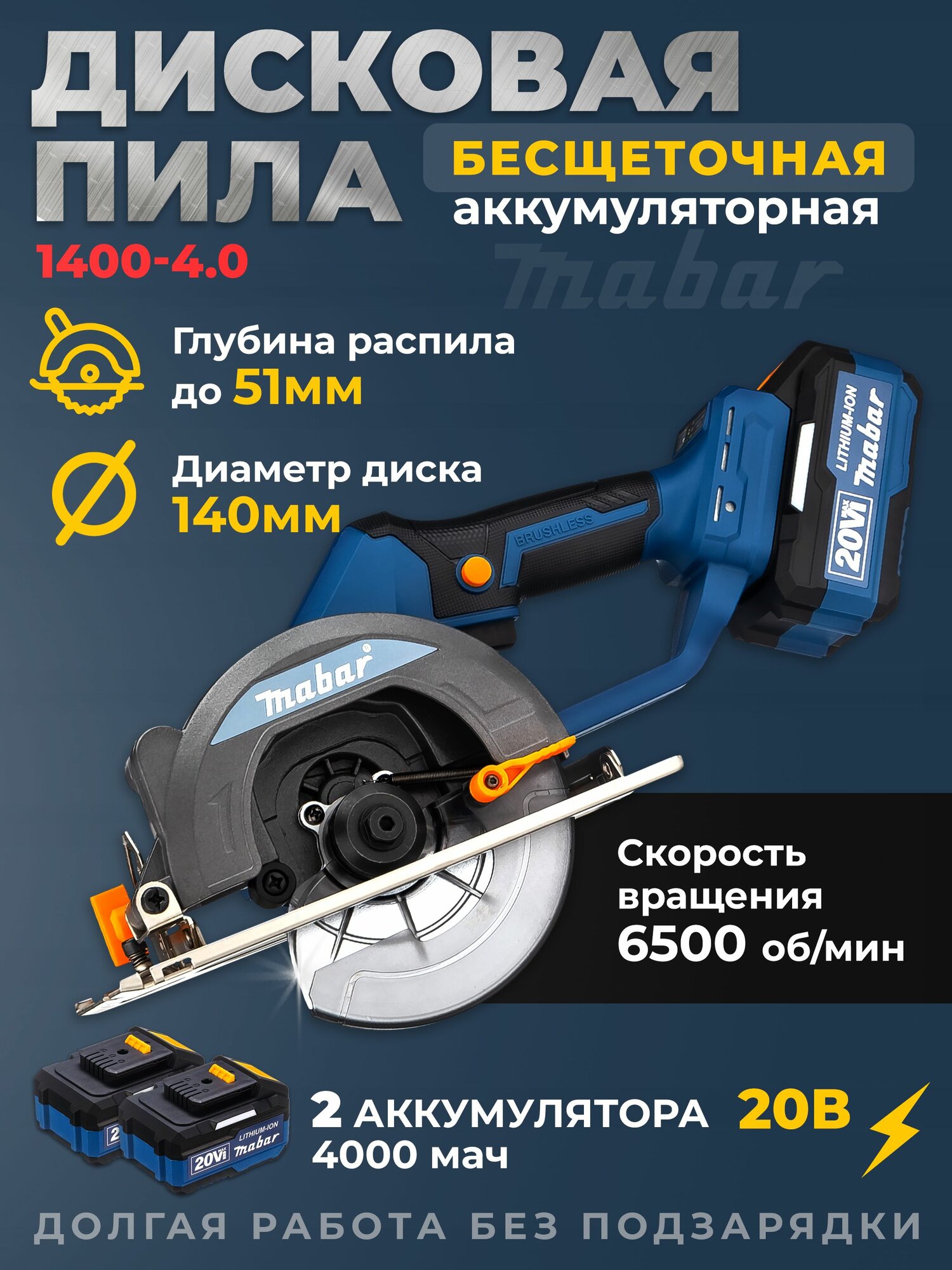 Циркулярная пила Mabar 1400-4, для дерева/металла, бесщеточный мотор, АКБ 4000мАч, 2 шт: сравнение цен, характеристики, фото, актуальное наличие и цены.