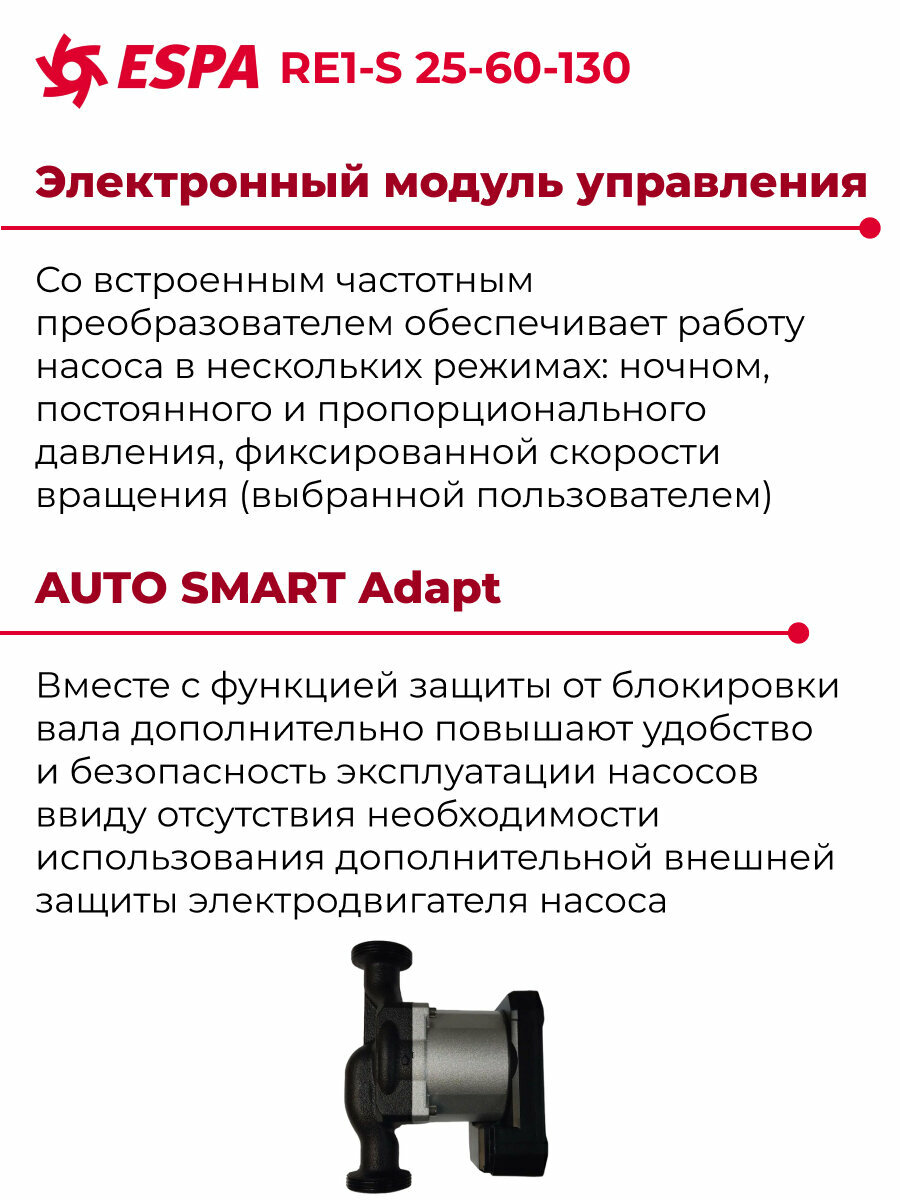 Циркуляционный насос ESPA RE1-S 25-60-130, с частотным регулированием, 130мм, без гаек: сравнение цен, характеристики, фото, актуальное наличие и цены.