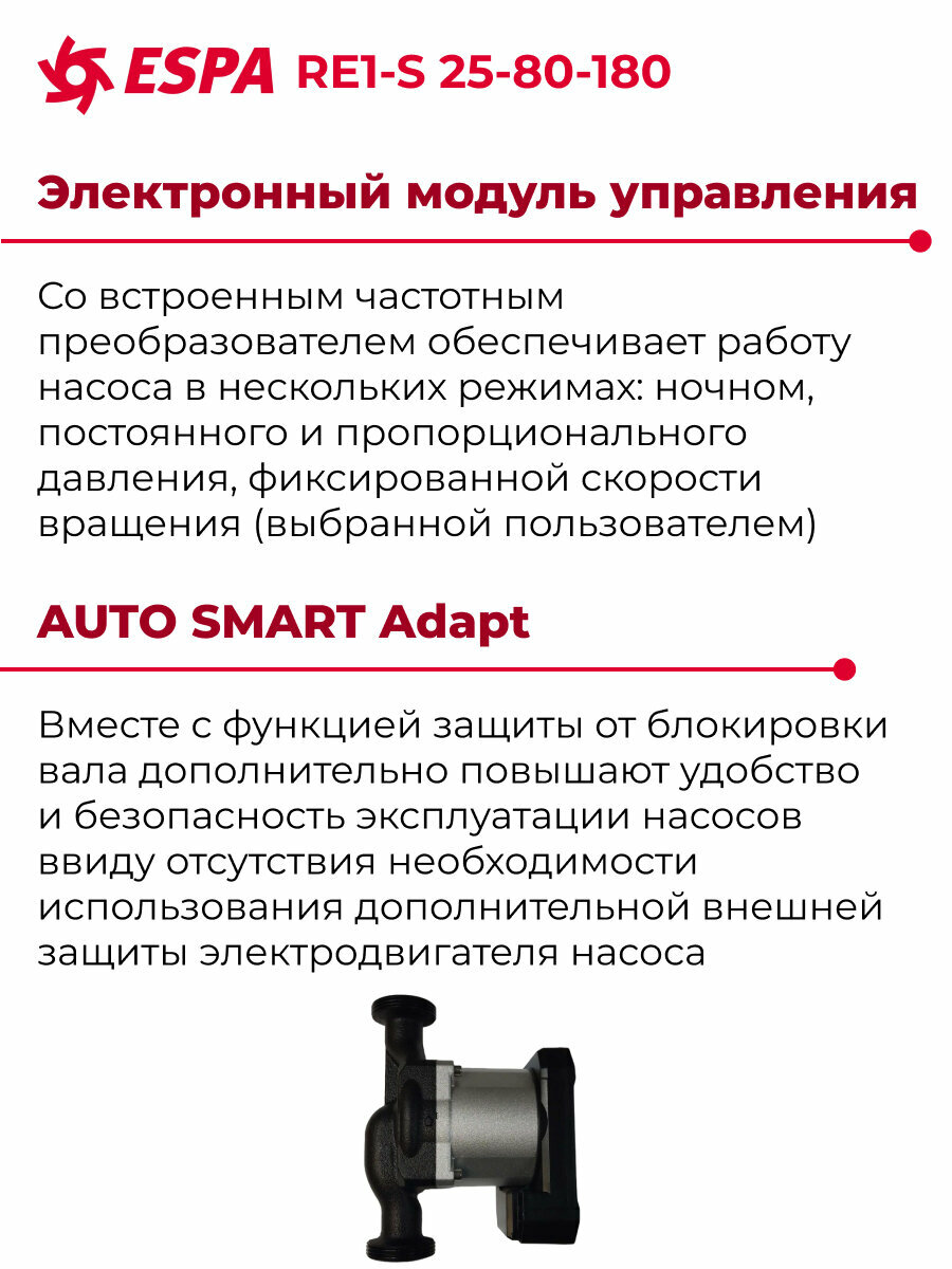 Циркуляционный насос ESPA RE1-S 25-80-180, с частотным регулированием, 180мм, без гаек: сравнение цен, характеристики, фото, актуальное наличие и цены.