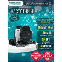 Насос циркуляционный SHIMGE APE 25-6-130 с частотным регулированием (1х220В; от 3 до 45 Вт; L130), гайки в комплекте, аналог Grundfos, Valflex, Джилекс, Jemix