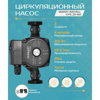 Циркуляционный насос Smart Install CPS 25-60 (H-6 м, 180 мм. , 100 Вт.) с гайками: сравнение цен, характеристики, фото, актуальное наличие и цены.