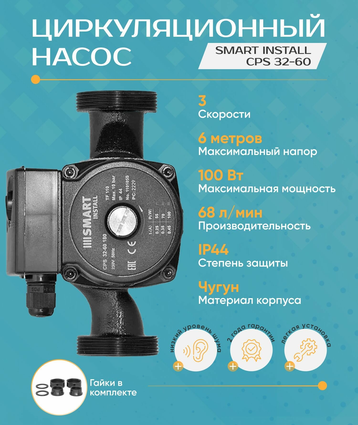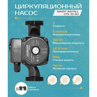 Циркуляционный насос Smart Install CPS 32-60 (H-6 м, 180 мм. , 100 Вт.) с гайками: сравнение цен, характеристики, фото, актуальное наличие и цены.