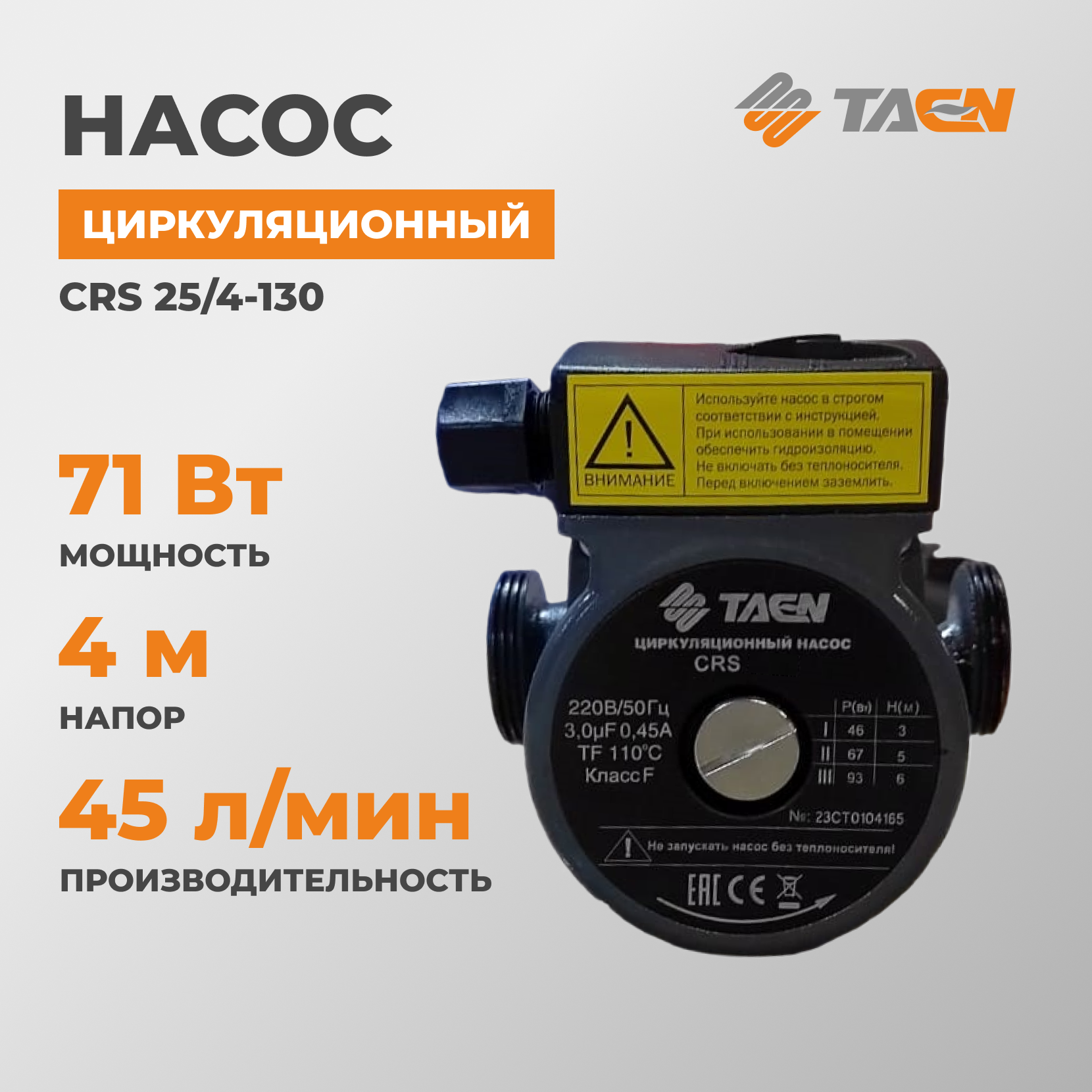 TAEN CRS 25/4-130 (CRS.2540.130), Насос циркуляционный (отопления) с гайками: сравнение цен, характеристики, фото, актуальное наличие и цены.