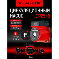 Купить Циркуляционный насос Verton AQUA CP25/8 (245-200-150Вт, Qmax60-50-40л/мин, Hmax8-7-5, L180мм, подкл38мм) с доставкой по всей России.