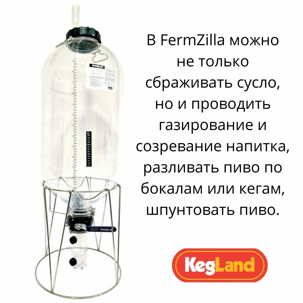 Цилиндро-конический танк FermZilla — доступный пластиковый ферментер с коническим основанием. Способность держать давление превращает его в настоящий Юнитанк. Это уже третье, улучшенное поколение Юнитанка — теперь дисковый кран и ёмкость для сбора дрожжей присоединяются к ферментеру с помощью кламповых, а не резьбовых соединений. Кламповые соединения значительно облегчают сборку/разборку ёмкости, кроме того они более гигиеничны и герметичны.