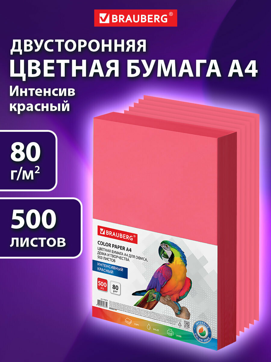 Цветная бумага для принтера А4 набор 500 листов, 80 г м2, красная, интенсив, для печати и офисной техники, Brauberg, 115215: сравнение цен, характеристики, фото, актуальное наличие и цены.