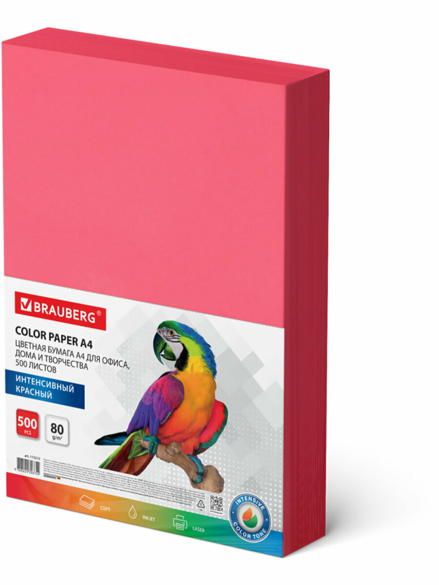 Купить Цветная бумага для принтера А4 набор 500 листов, 80 г м2, красная, интенсив, для печати и офисной техники, Brauberg, 115215 с доставкой по всей России.
