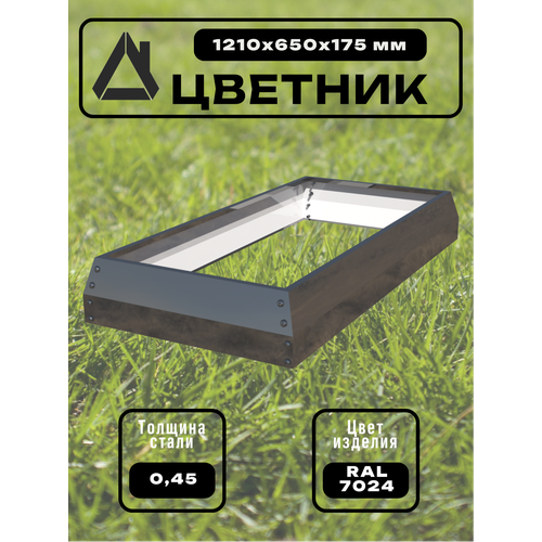 Цветник металлический выполнен из оцинкованной стали с полимерным покрытием серого цвета Ral 7024 , толщина металла 0,45мм